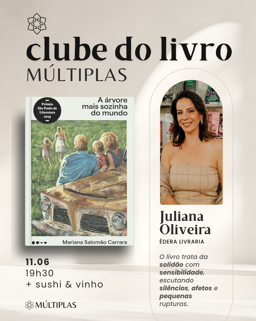 SARAU MÚLTIPLAS 29 de janeiro • 19h30 • Casa Múltiplas Sarau Múltiplas nasce como o primeiro encontro do nosso Clube de Experiências. Uma noite pensada para sair do óbvio e…