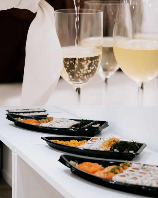 – Sushi, vinho e sobremesa durante o encontro